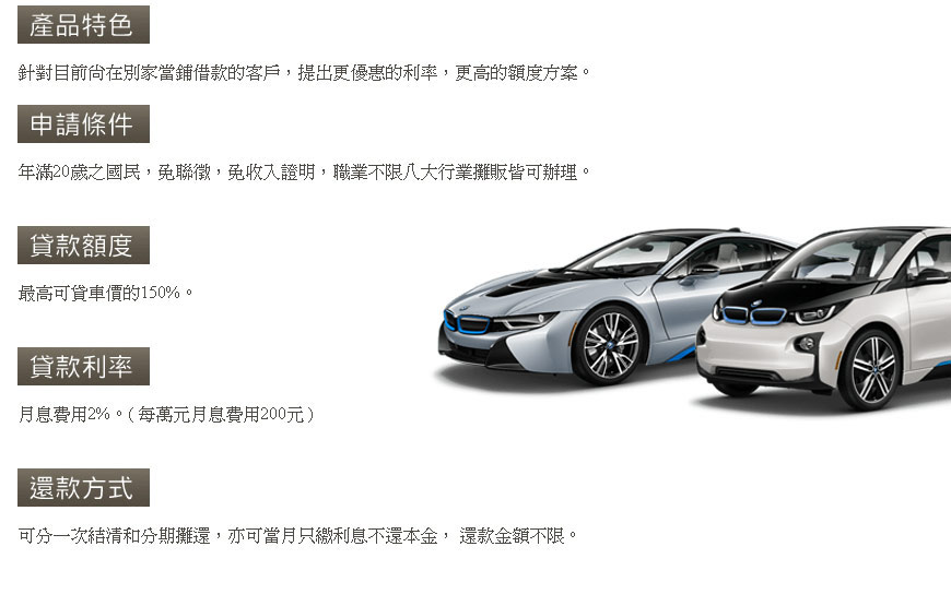 2.利息(以當舖法規定為準) : 月息最低1%~最高2.5%[年利率最低12%最高30%] (提早結清以日計算,無違約金)